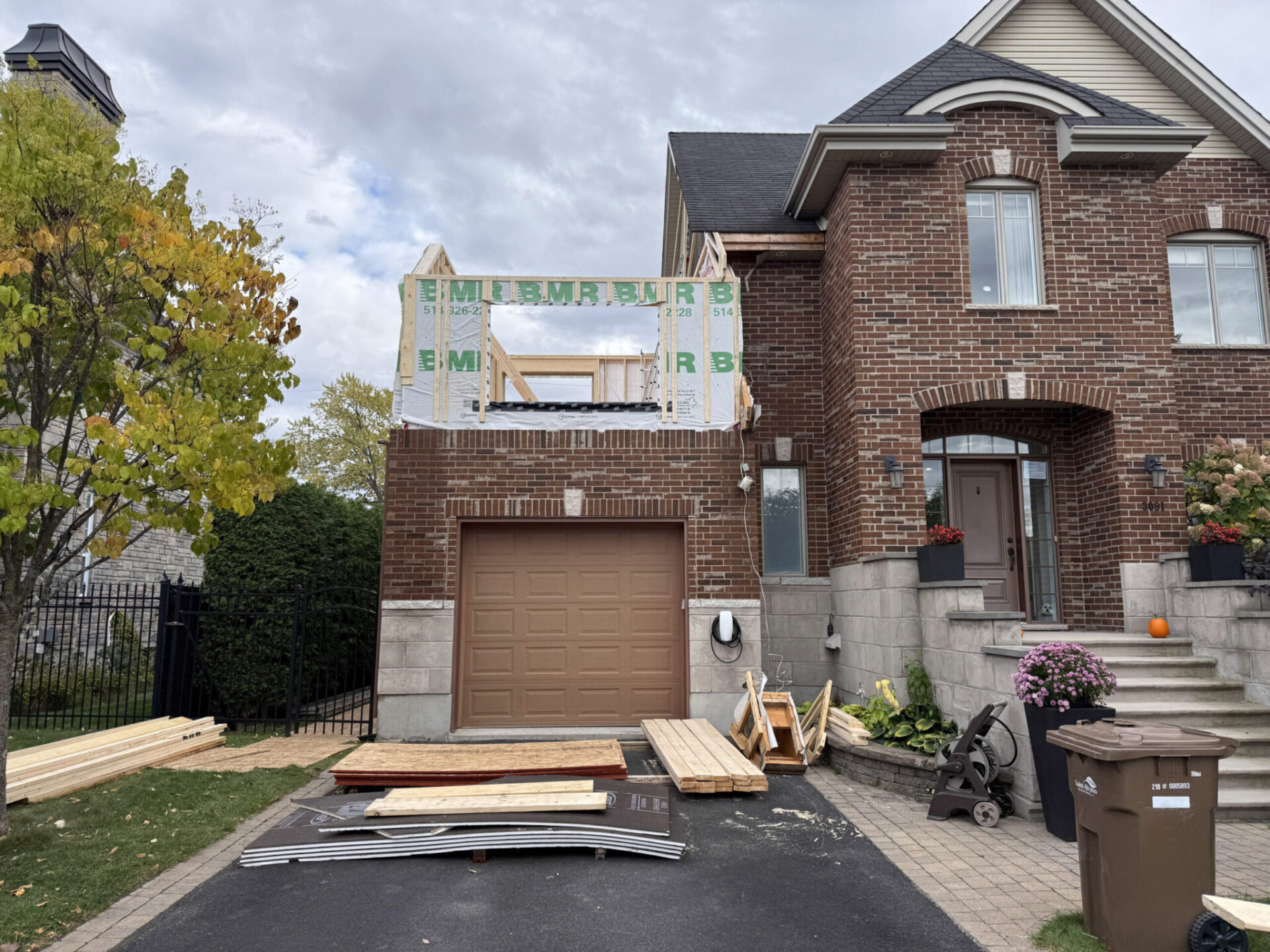 Ce projet consiste en un agrandissement au-dessus d’un garage existant, réalisé afin de répondre à l’évolution des besoins d’une famille. L’intervention a permis l’ajout d’une pièce supplémentaire à l’étage, actuellement utilisée comme salle de jeux, tout en offrant une flexibilité d’aménagement pour les usages futurs.