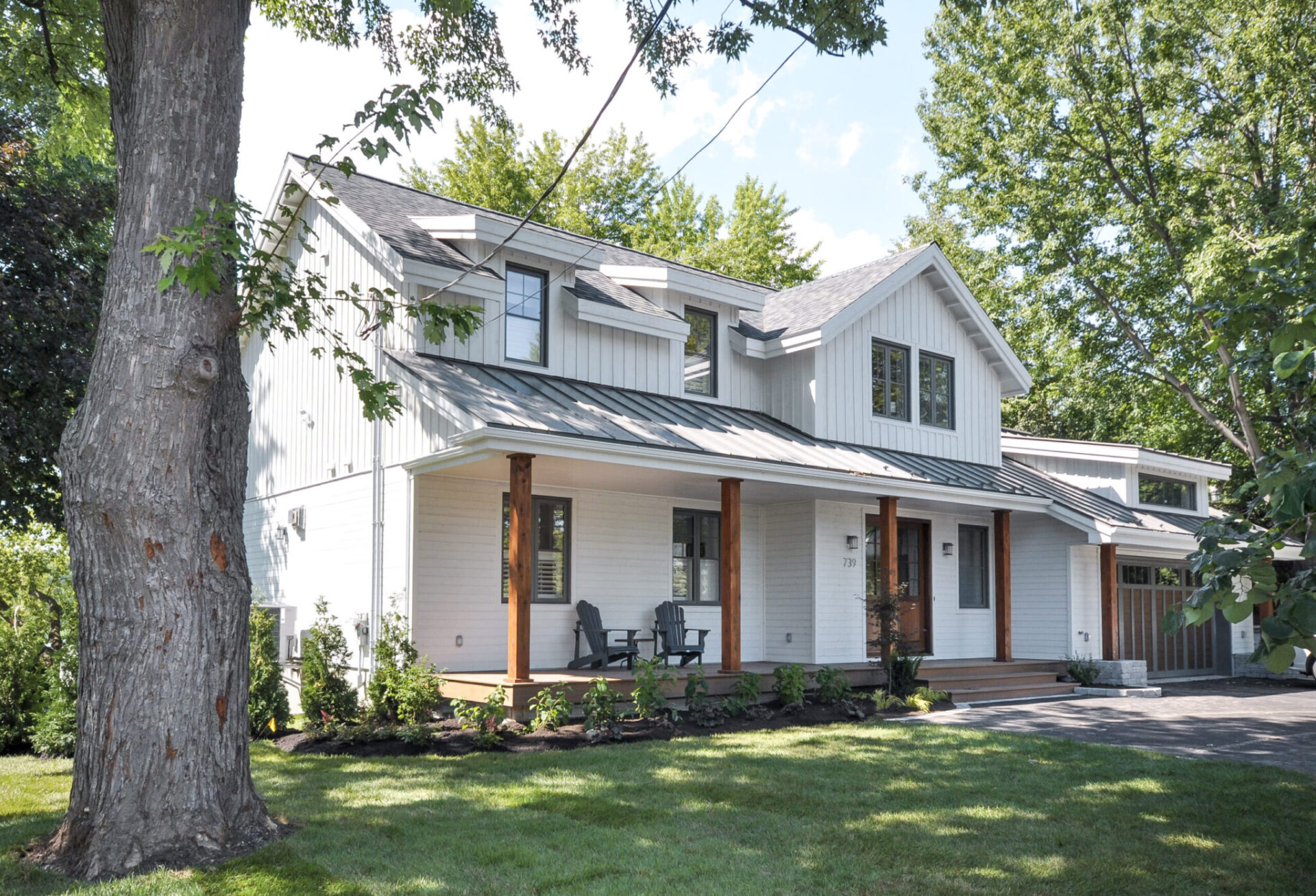 Implantée en bordure du fleuve Saint-Laurent à Boucherville, cette maison de style Urban Farmhouse s’inscrit avec justesse dans son environnement. Son architecture dialogue avec les résidences avoisinantes et le tissu bâti ancestral, tout en affirmant un caractère contemporain, sobre et chaleureux.